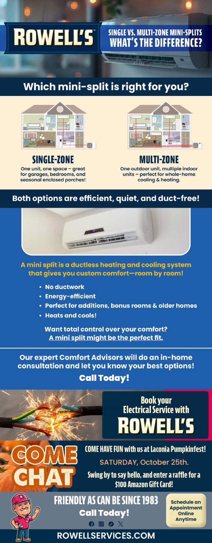 "Friendly As Can Be Since 1983!" When you need help with your plumbing, drains, heating, cooling or electrical in Loudon, you can always rely on Rowell's Services! Call us now or book online!